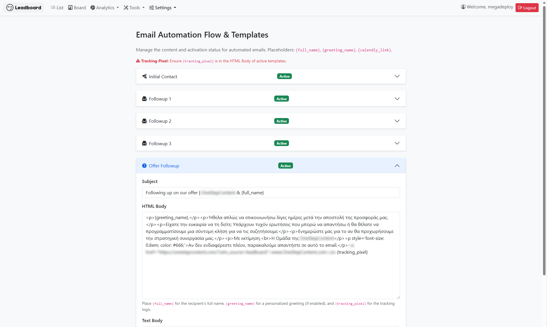 Το LeadBoard αυτοματοποιεί την επικοινωνία σας. Σχεδιάστε προσωποποιημένες ακολουθίες email που ενεργοποιούνται βάσει συμπεριφοράς ή χρόνου. Κρατήστε το ενδιαφέρον ζωντανό και αυξήστε τις μετατροπές σας χωρίς χειροκίνητη προσπάθεια.